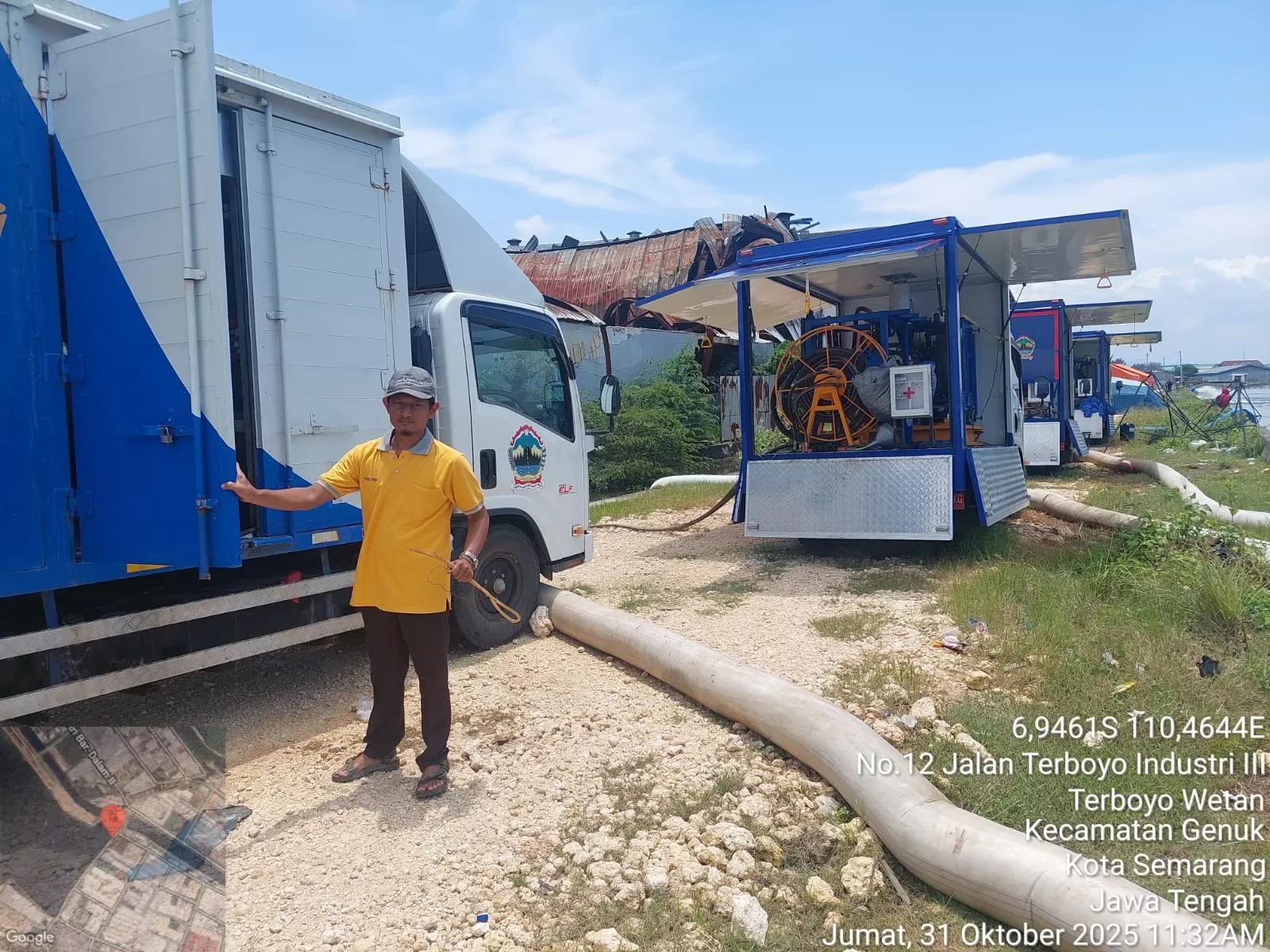 Specification: Capacity 150 lt/det, Weight 50kgs, Axial Hidraulic Pump, Hydraulic Power Unit, Mobile Double Cabin, 25 meters Mt My LIning Rubber Layflat with Camlock, 25 meters Hydraulic Hose with Quick Coupler